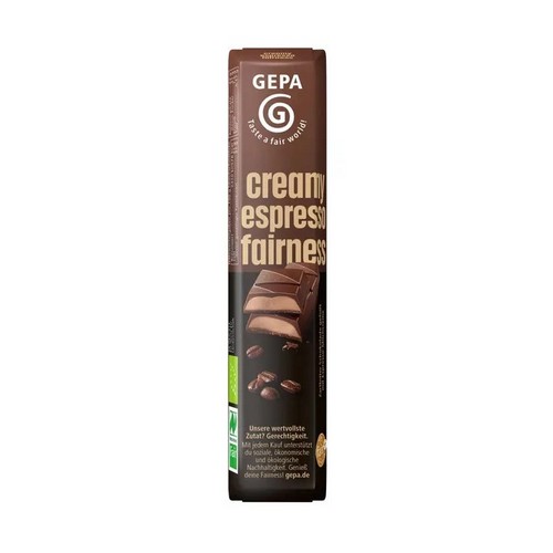 Barre de chocolat noir finement amer fourré de crème au lait à l'espresso.